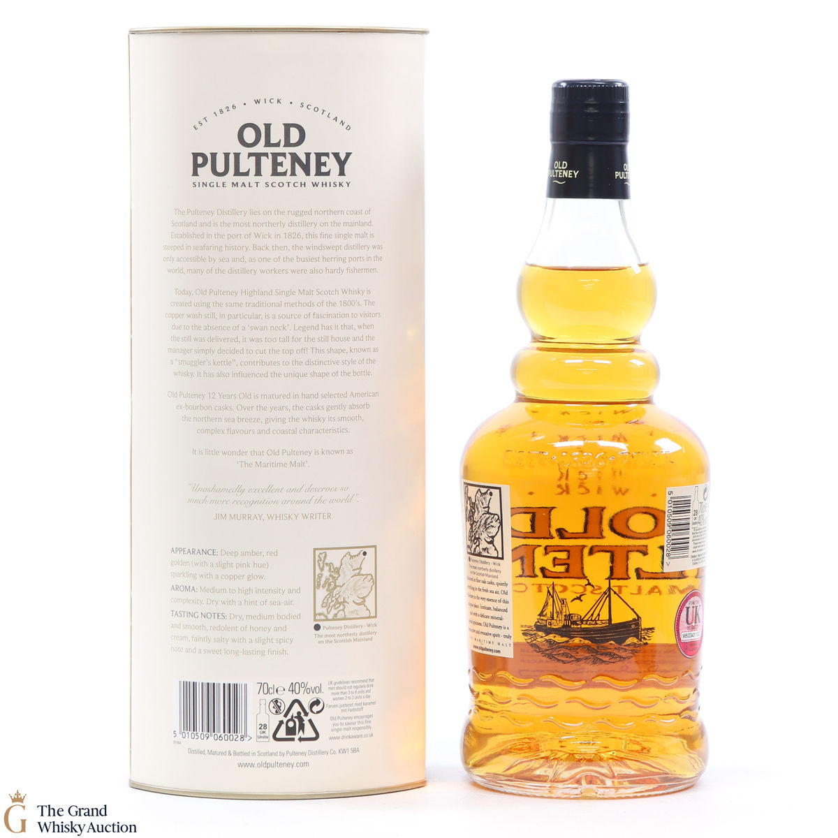 Old Pultney is known as the Maritime Malt due to the distillery location at the very North of Scotland and this is honoured with the unique shape of the bottle.