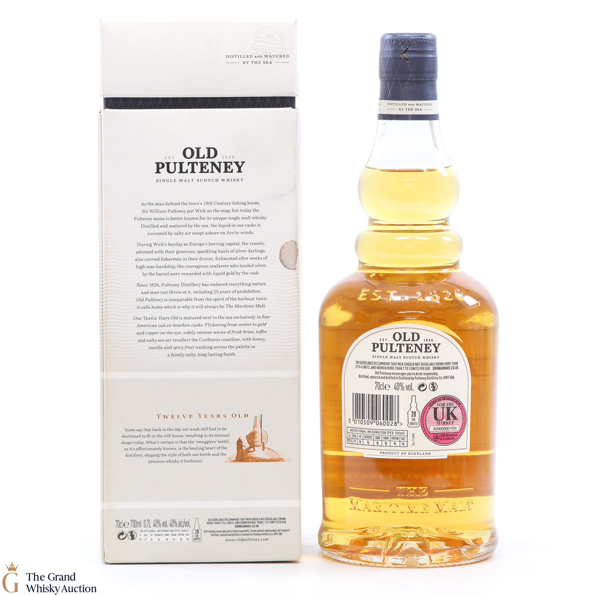 Old Pultney is known as the Maritime Malt due to the distillery location at the very North of Scotland and this is honoured with the unique shape of the bottle.