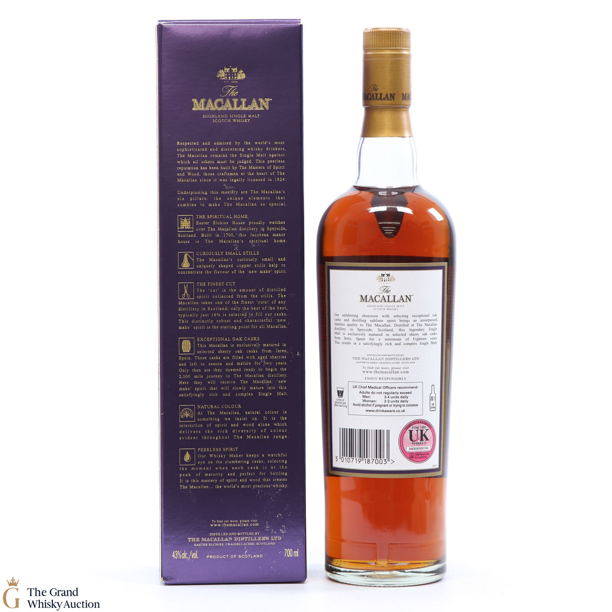 Due to the various ages of bottles and their seals, the condition of liquid is at the buyer's discretion and no claim can be lodged against failure/leakage in transit. Loss and breakage cover is available at 3% of the hammer price as standard. If the lot is not insured, no claim can be lodged against the courier or The Grand Whisky Auction for breakage or loss in transit.