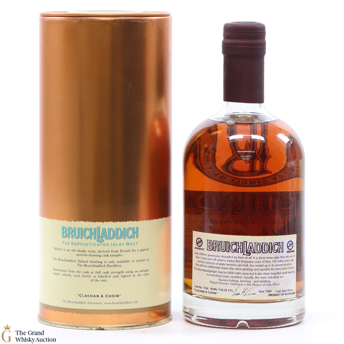 Distilled in 1988, this Bruichladdich was matured in a single sherry cask #1184. Bottled in honour of the Mayor of Islay, this is part of the 50cl 'Valinch' series.
