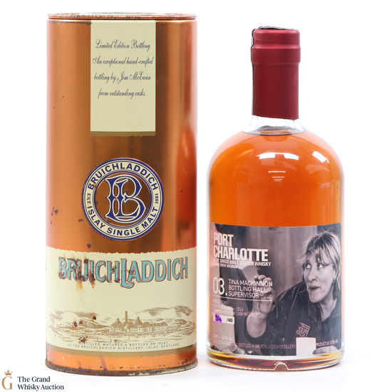 This is a distillery exclusive hand bottling from Bruichladdich distillery. This Port Charlotte Laddie Crew Valinch was released in honour of the Bottling Hall supervisor Tina Mackinnon.