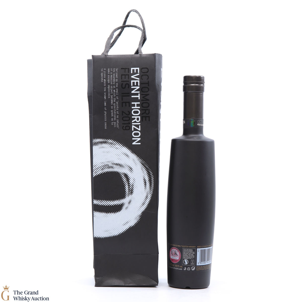 Octomore Event Horizon is the 2019 Fèis Ìle expression from Bruichladdich. It is the oldest Octomore released by the Islay distillery. This is one of only 2,000 bottles of Octomore Event Horizon which were released exclusively at the distillery during the festival and have already sold out completely.