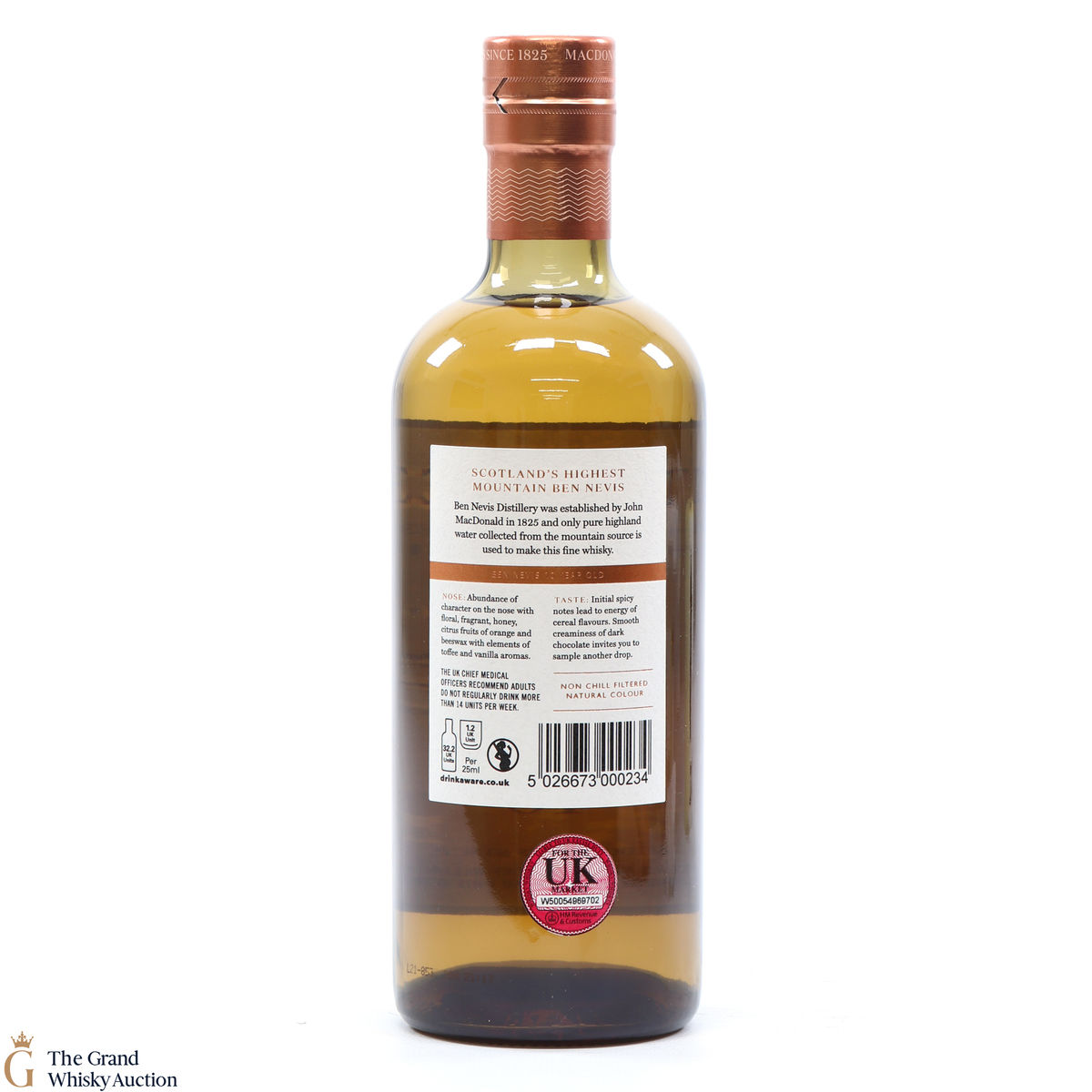 Due to the various ages of bottles and their seals, the condition of liquid is at the buyer's discretion and no claim can be lodged against failure/leakage in transit. Loss and breakage cover is available at 3% of the hammer price as standard. If the lot is not insured, no claim can be lodged against the courier or The Grand Whisky Auction for breakage or loss in transit.