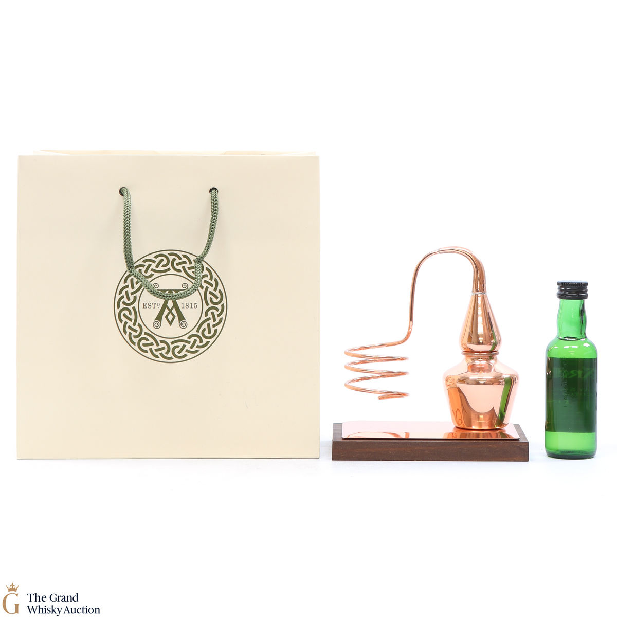This lot includes a 5cl bottling of Ardbeg 10-Year-Old and a still syle holder.