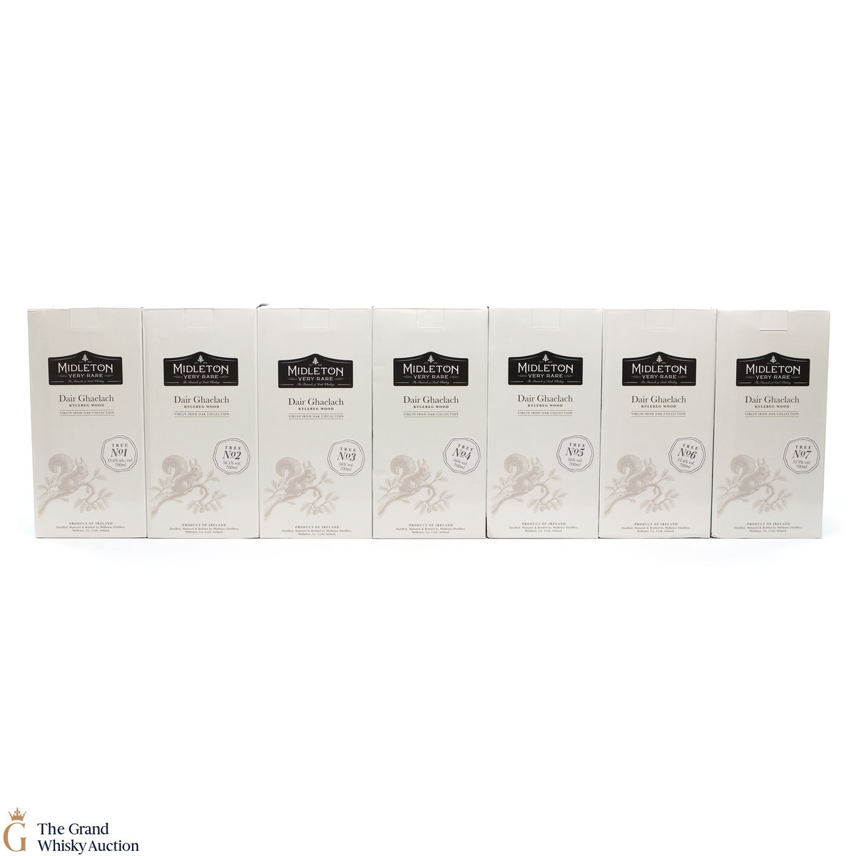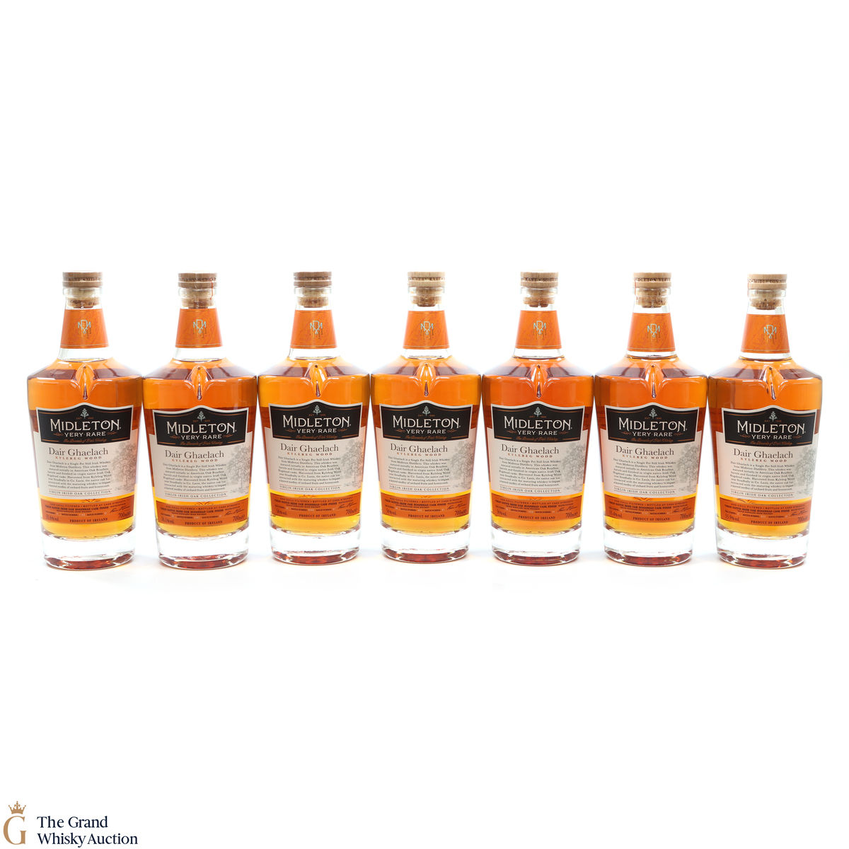 Midleton Dair Ghaelach, meaning Irish Oak, these expressions were finished in casks of ancient Irish Oak from Kylebeg Wood in County Laois. Offering a rare chance to experience the influence Irish oak has on some of the finest Irish whiskey available. This lot includes 7 x 70cl bottles from batch 1: