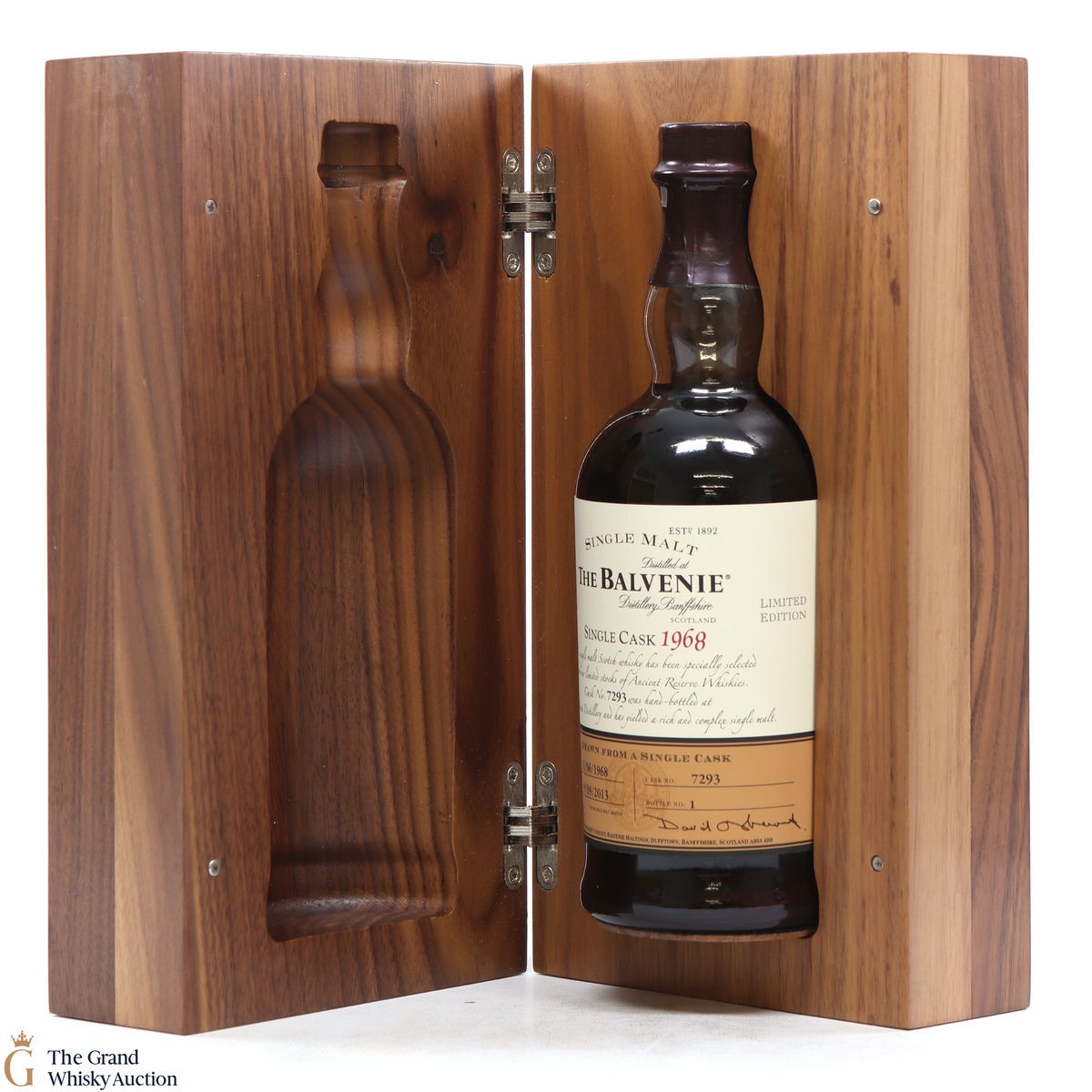 It doesn't get rarer than 1 of only 1 bottle. This bottle is of course a very limited edition from a single cask #7293 which is from Balvenies ancient reserve whiskies. It was hand bottled at the distillery on the 19th of September 2013 to celebrate and recognize a valuable contribution to the distillery across this employee's career. The distillation of this precious liquid took place in 1968 and the maturation took place in an refill American oak hogshead. Described to have a rich and vibrant nose, this whisky has great depth leaving a truly memorable and long-lasting finish.