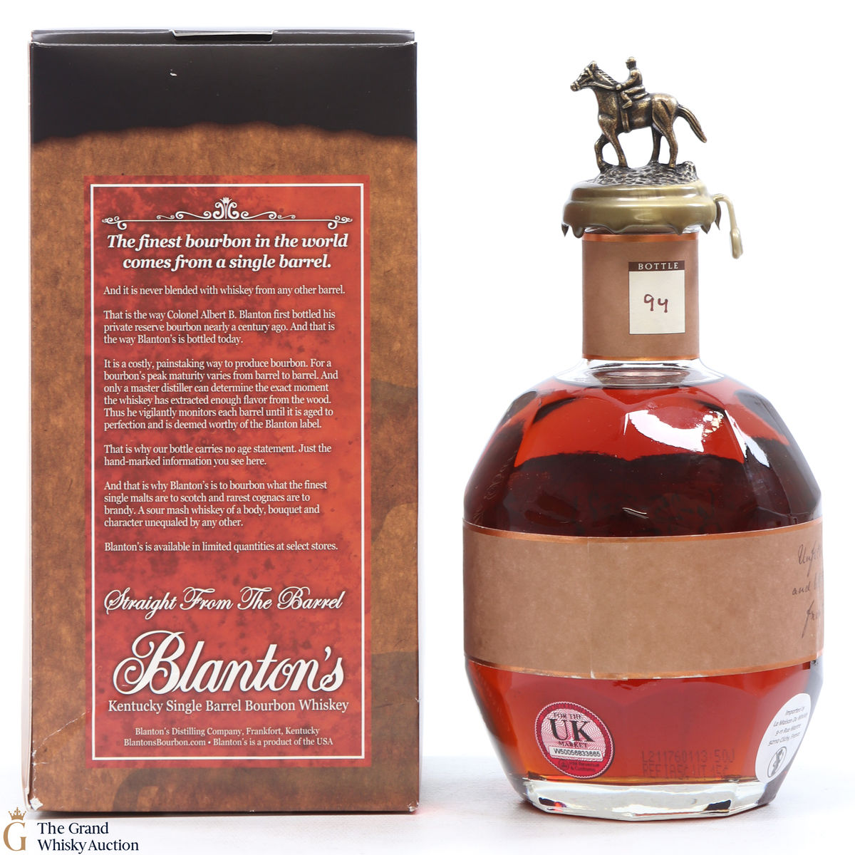 PLEASE NOTE: The wax seal on Blanton's bottles are prone to cracking in transit due to their design. Therefore, as stated in our T&C’s, we do not and will not accept liability should the seal be breached, broken, split or leak in transit. Additionally, please know due to the design of the internal cardboard packaging that surrounds the top of the bottles, it too may be torn. By bidding on this lot you have understood this to be true. Insurance is for complete breakage or loss in transit only.