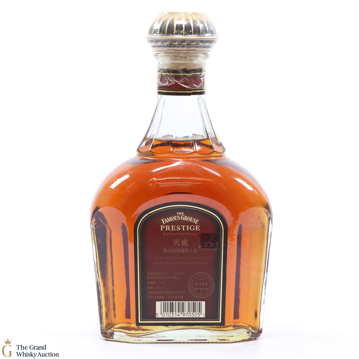 Due to the various ages of bottles and their seals, the condition of liquid is at the buyer's discretion and no claim can be lodged against failure/leakage in transit. Loss and breakage cover is available at 3% of the hammer price as standard. If the lot is not insured, no claim can be lodged against the courier or The Grand Whisky Auction for breakage or loss in transit.
