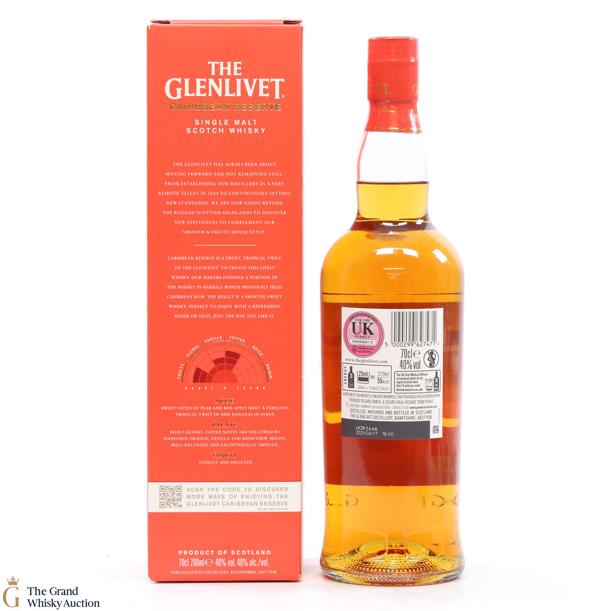 Distilled at Glenlivet Distillery in Speyside, this single malt was finished in casks that previously held Caribbean Rum.