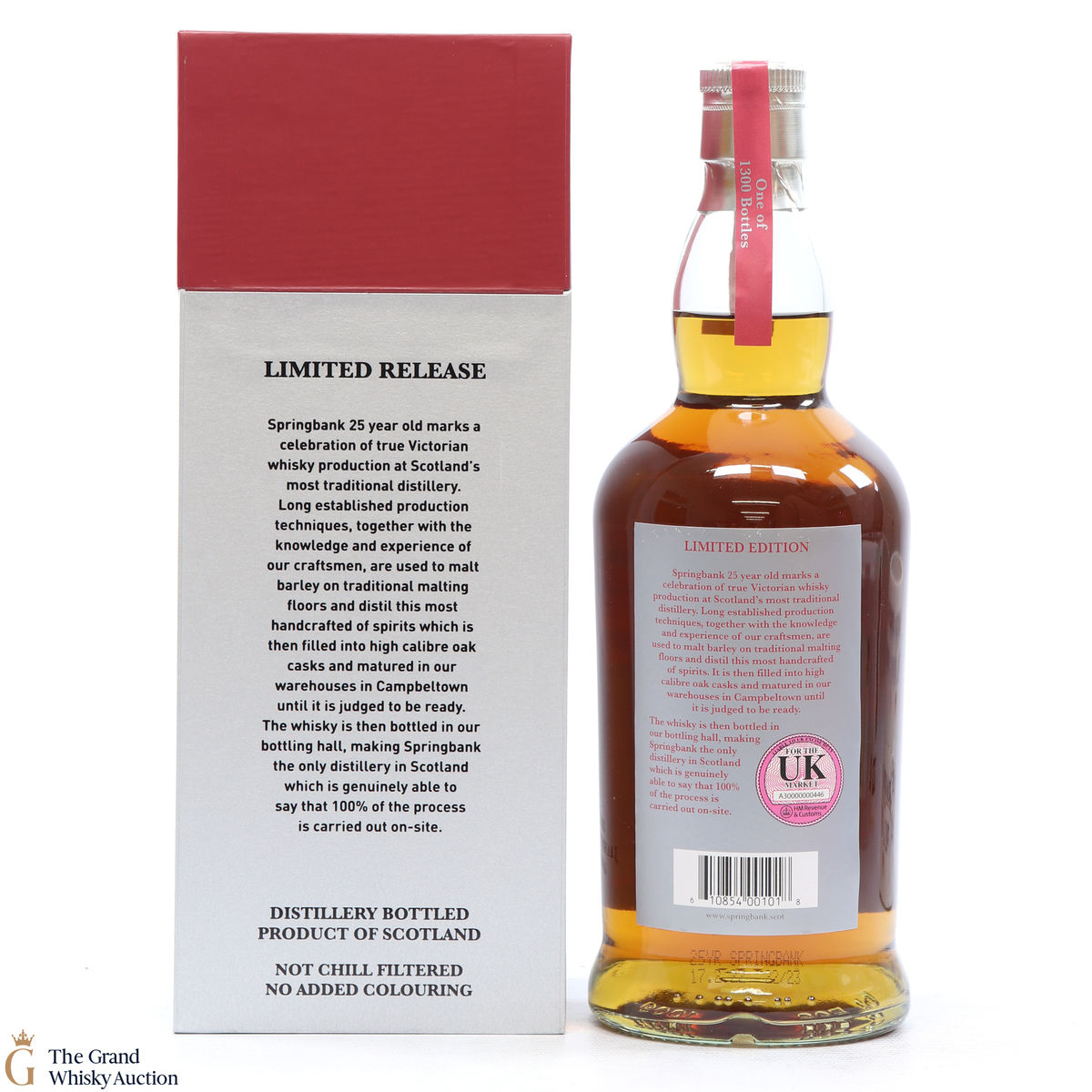 A very limited release from the Campbeltown distillery Springbank. Bottled in 2022 this 25 Year Old was bottled at 46% ABV and is one of only 1,300 bottles. This bottling has been made up from a combination of casks; 40% bourbon casks, 60% sherry casks.