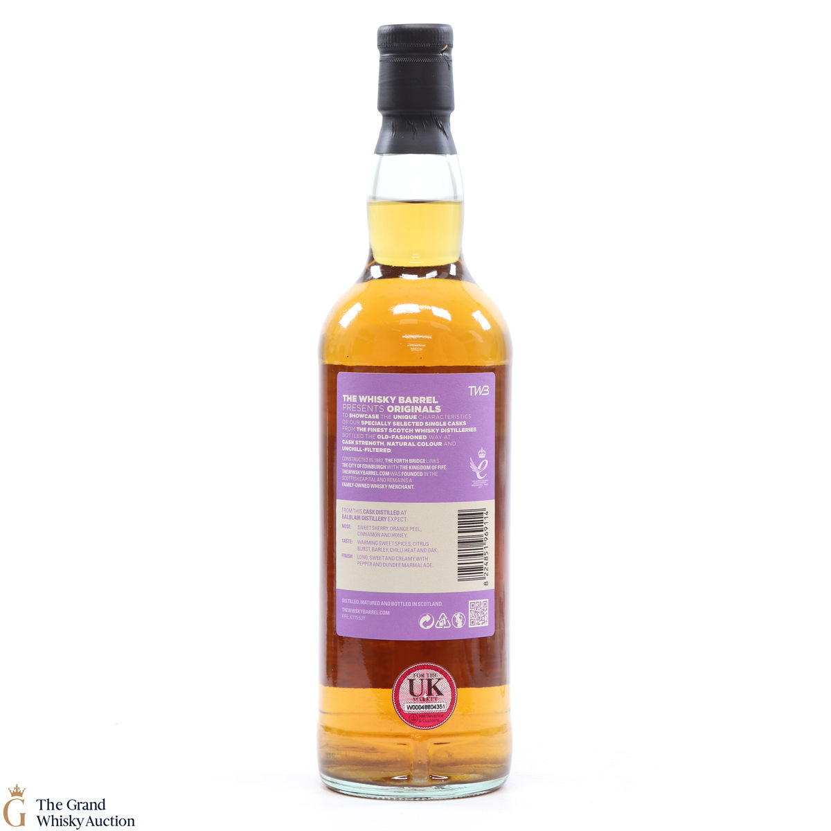 Due to the various ages of bottles and their seals, the condition of liquid is at the buyer's discretion and no claim can be lodged against failure/leakage in transit. Loss and breakage cover is available at 3% of the hammer price as standard. If the lot is not insured, no claim can be lodged against the courier or The Grand Whisky Auction for breakage or loss in transit.