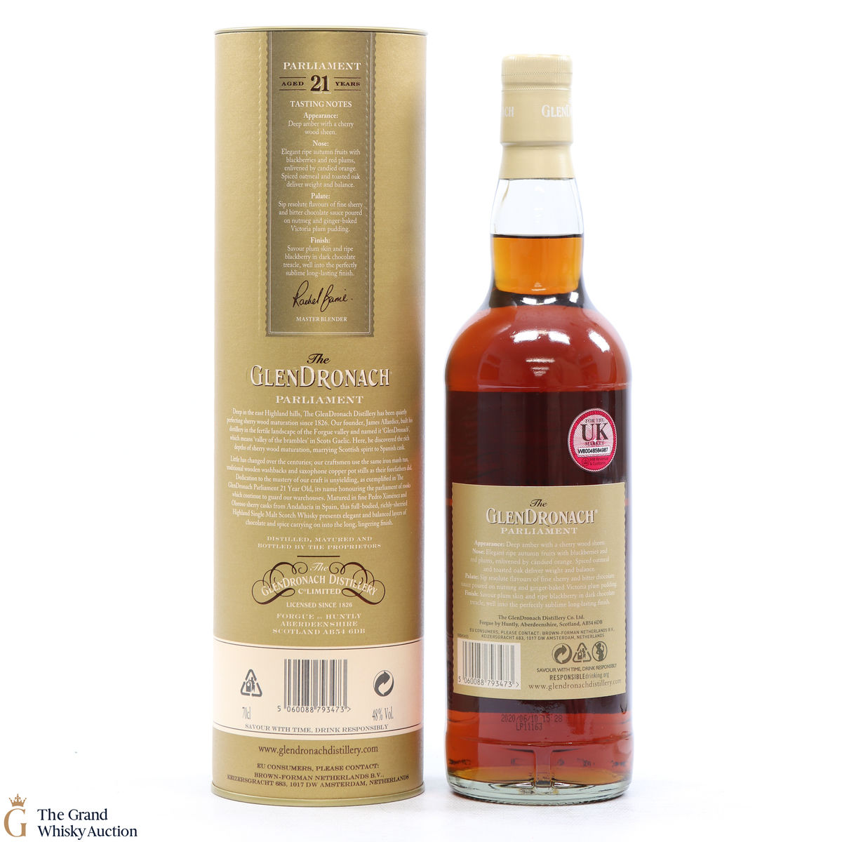 Released in 2011 by Glendronach Distillery, this bottling was named after the Parliament of rooks that lives in the trees near the distillery. The single malt has been aged for 21 years in a mix of sherry casks (Oloroso and sweet Pedro Ximenez dessert sherry).
