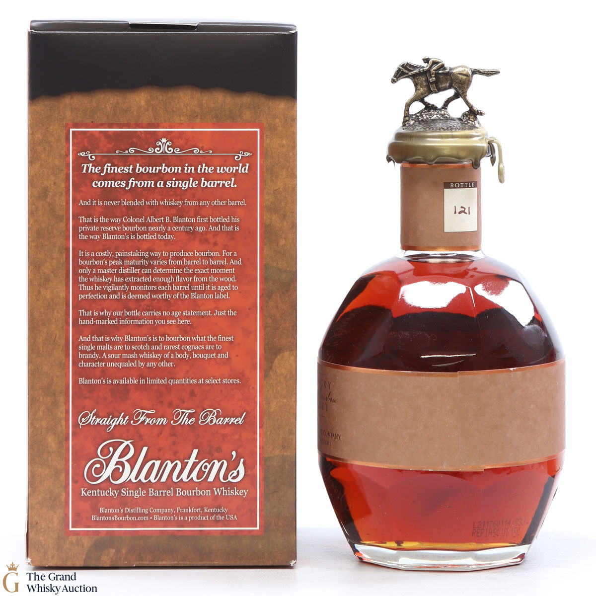 PLEASE NOTE: The wax seal on Blanton's bottles are prone to cracking in transit due to their design. Therefore, as stated in our T&C’s, we do not and will not accept liability should the seal be breached, broken, split or leak in transit. Additionally, please know due to the design of the internal cardboard packaging that surrounds the top of the bottles, it too may be torn. By bidding on this lot you have understood this to be true. Insurance is for complete breakage or loss in transit only.