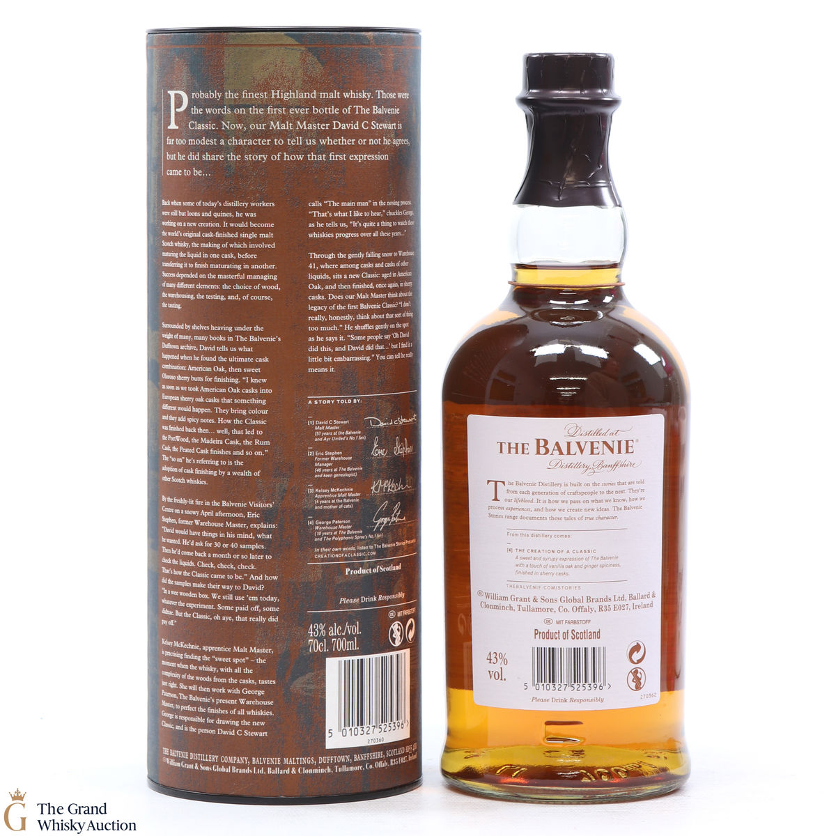 Part of a new trio of whiskies in The Balvenie Stories collection. This no-age-statement whisky pays homage to David Stewart MBE, The Balvenie malt master and longest-serving malt master in the industry. Stewart created the first cask-finished whisky back in the 1980s with The Balvenie Classic. The Creation of the Classic has been matured in American oak casks and finished in oloroso Sherry casks.