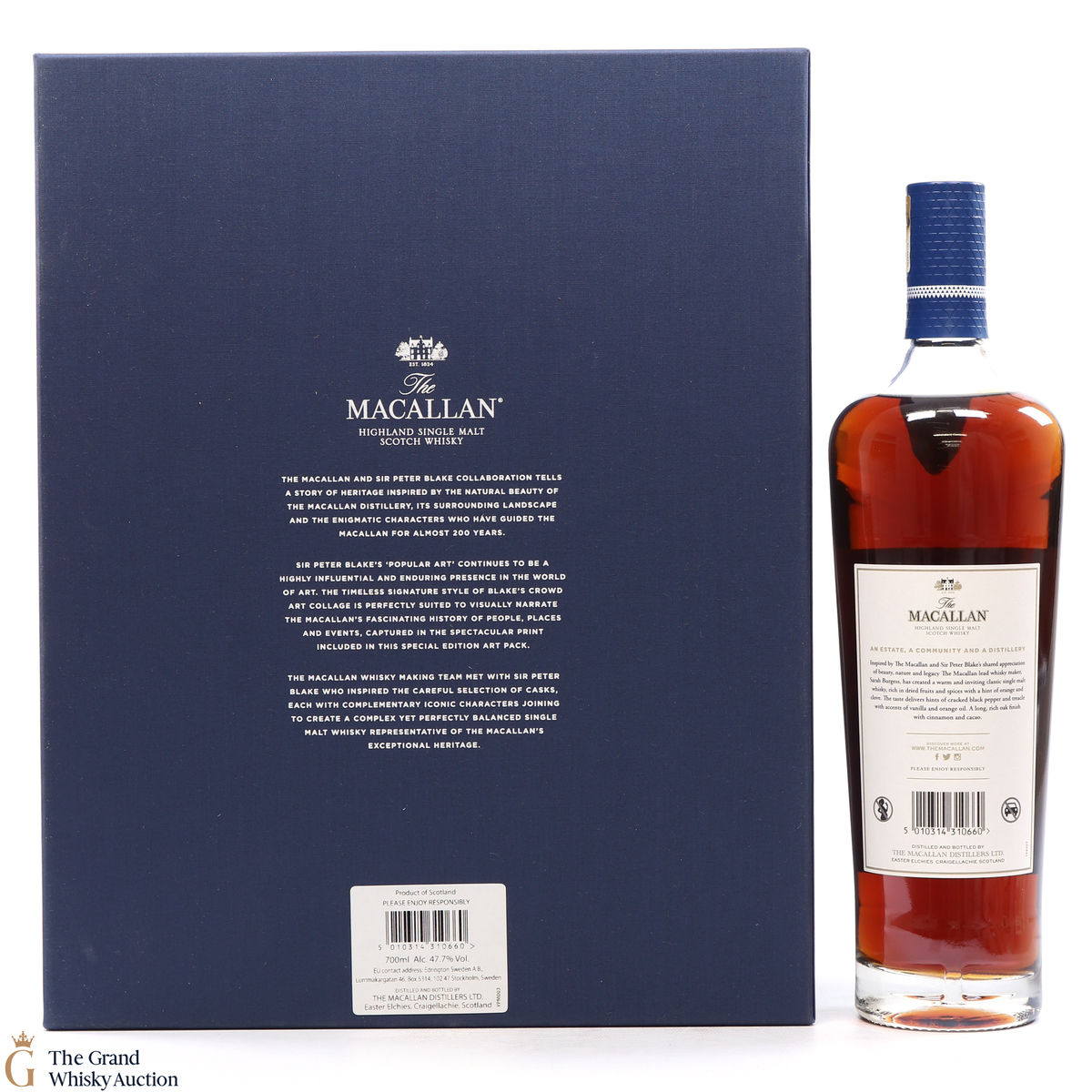 Part of The Anecdotes of Ages Collection, this is an extraordinary art and whisky collaboration with Sir Peter Blake. Being the third collaboration between the Macallan Distillery and Sir Peter Blake, this single malt was created to commemorate Sir Peter Blake's visit to The Macallan Estate. An Estate, a Community and a Distillery tells the story of some of the colourful characters from the distilleries past and present and features a label designed by Sir Peter Blake.