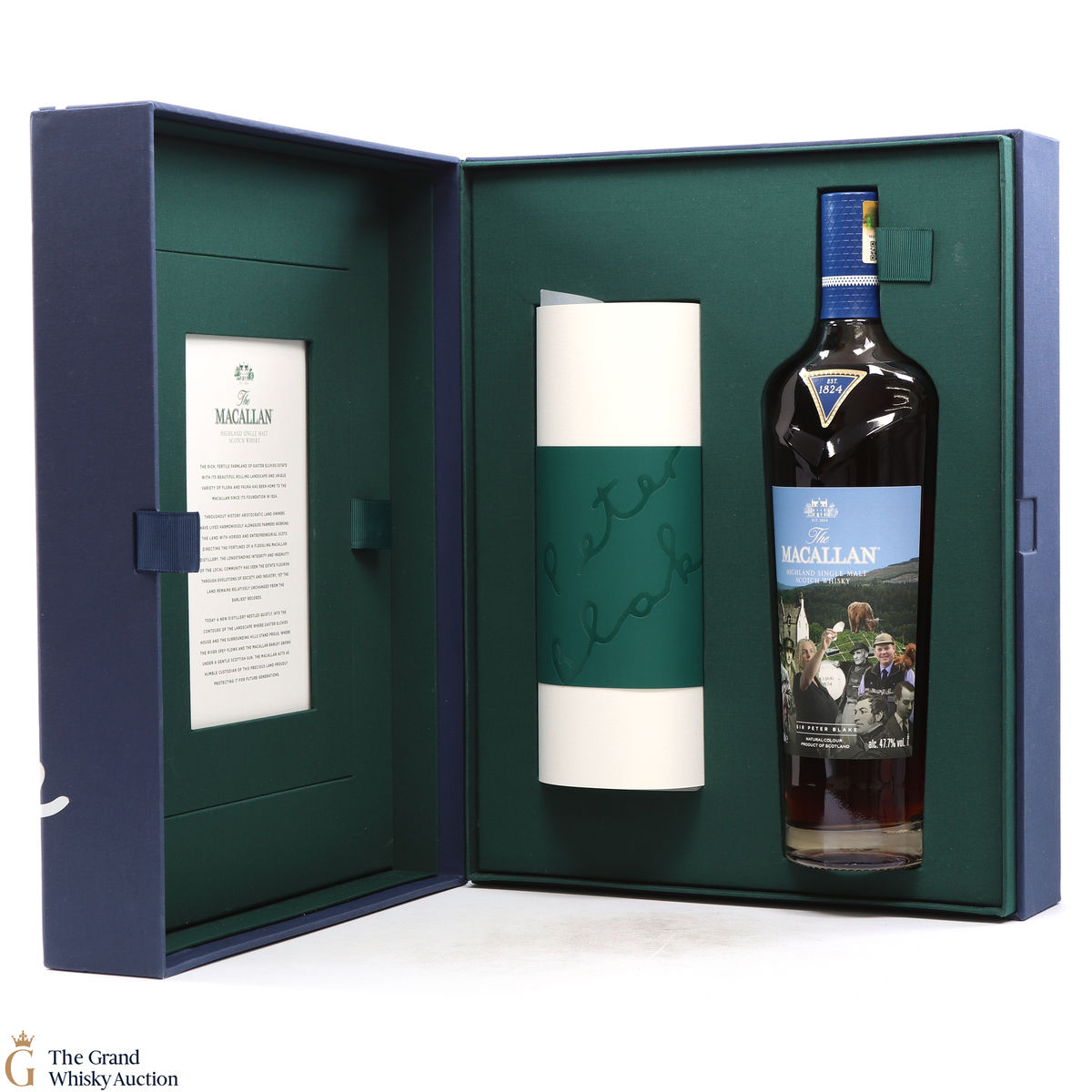 Along with this unique bottle of whisky is a scroll of artwork showing Sir Peter Blake's distinct style and a certificate detailing the history and heritage on which Sir Peter's art was based. There is also a piece of tracing paper which provides information on each character from The Macallan's history that Sir Peter chose to include in his art.