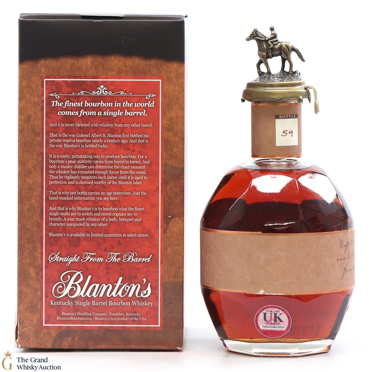 PLEASE NOTE: The wax seal on Blanton's bottles are prone to cracking in transit due to their design. Therefore, as stated in our T&C’s, we do not and will not accept liability should the seal be breached, broken, split or leak in transit. Additionally, please know due to the design of the internal cardboard packaging that surrounds the top of the bottles, it too may be torn. By bidding on this lot you have understood this to be true. Insurance is for complete breakage or loss in transit only.