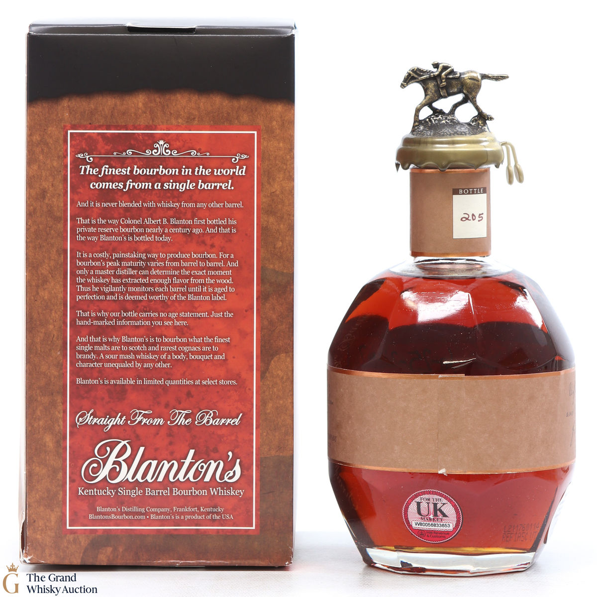 PLEASE NOTE: The wax seal on Blanton's bottles are prone to cracking in transit due to their design. Therefore, as stated in our T&C’s, we do not and will not accept liability should the seal be breached, broken, split or leak in transit. Additionally, please know due to the design of the internal cardboard packaging that surrounds the top of the bottles, it too may be torn. By bidding on this lot you have understood this to be true. Insurance is for complete breakage or loss in transit only.