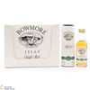 This lot contains 12 x 5cl bottling of 12-Year-Old Bowmore. This single malt has coastal notes with gentle peat.
