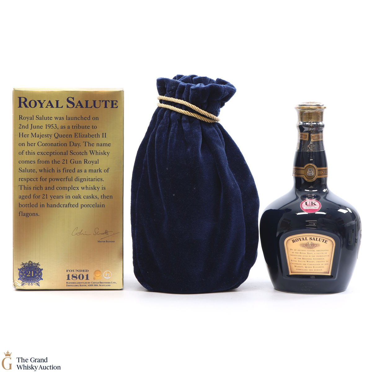 This is a special Sapphire-coloured edition of Chivas' Royal Salute 21 Year Old blended whisky from the Chivas Royal Salute Range.