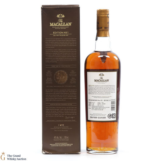 The Macallan Edition No. 1 is the debut expression in the Edition Series. This is a limited edition drawn from eight European and American oak cask styles selected for their unique characteristics.