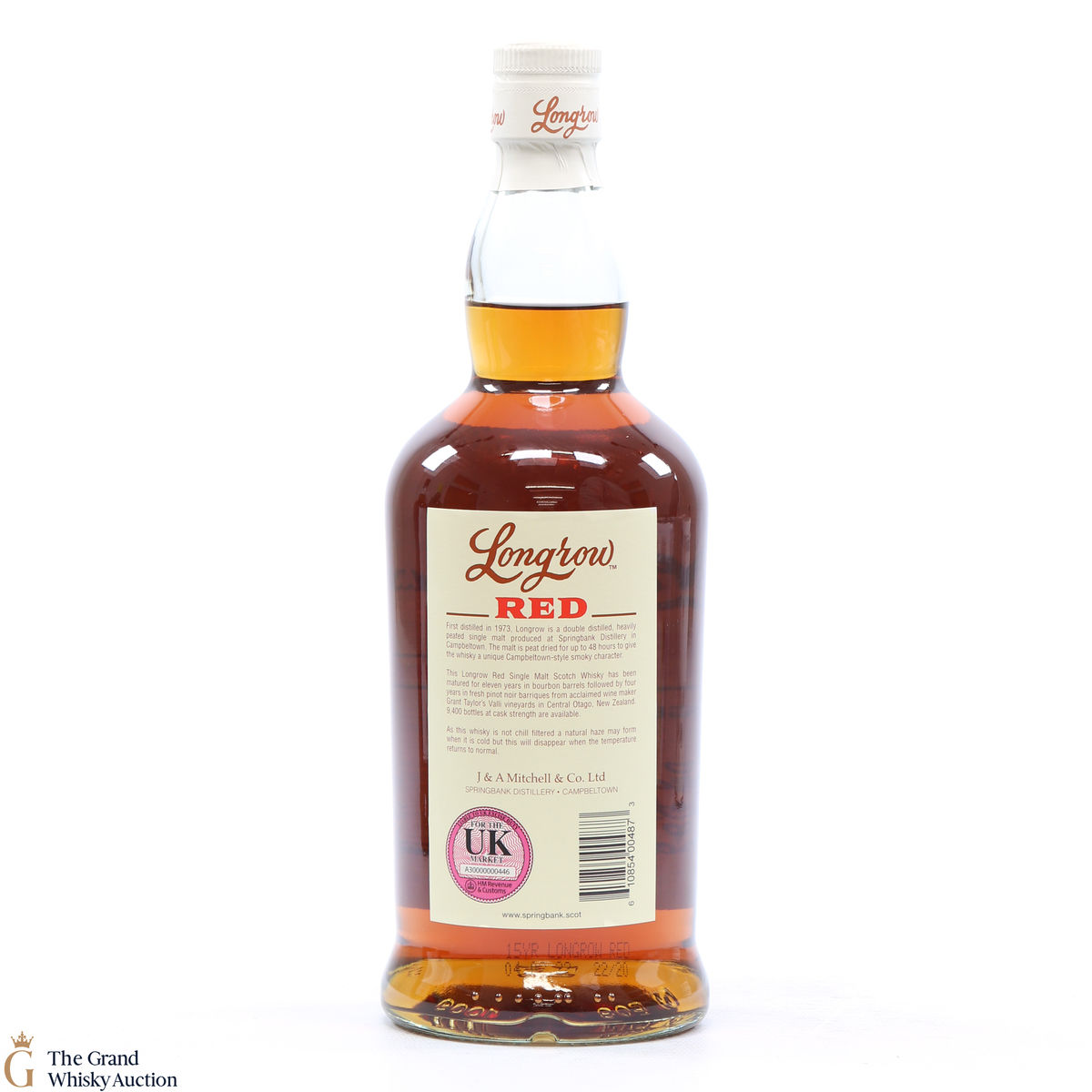 Springbank Longrow Red, is always bottled at cask strength, is released annually in small quantities and every year a different type of red wine cask is used to mature the whisky.