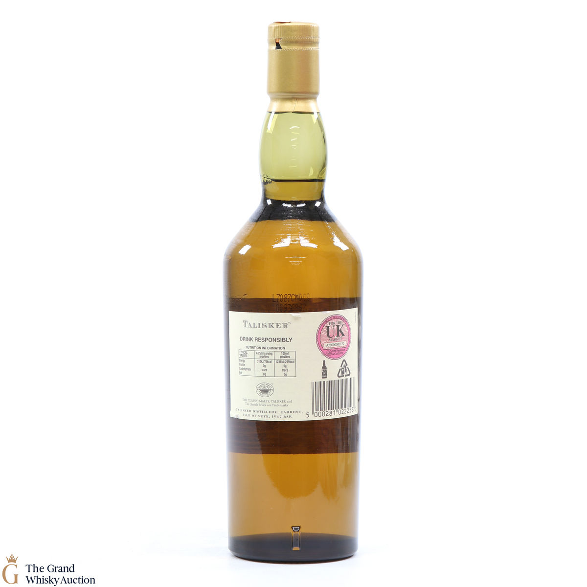 Due to the various ages of bottles and their seals, the condition of liquid is at the buyer's discretion and no claim can be lodged against failure/leakage in transit. Loss and breakage cover is available at 3% of the hammer price as standard. If the lot is not insured, no claim can be lodged against the courier or The Grand Whisky Auction for breakage or loss in transit.