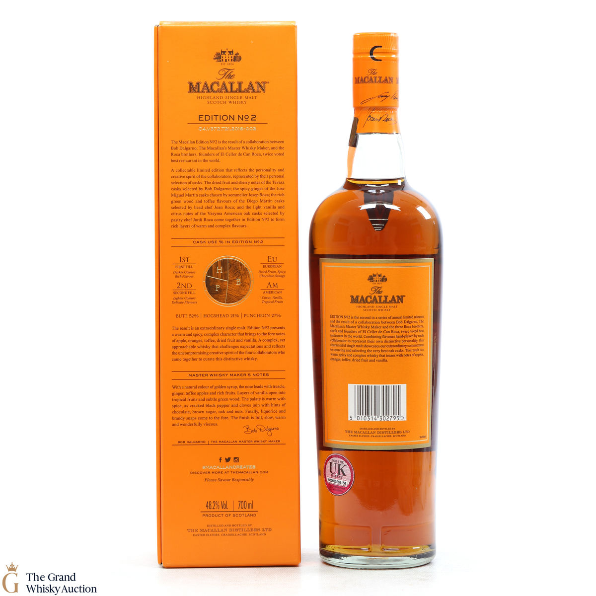 This is the second release from the Macallan Edition series. Edition No.2 is a collaboration between Macallan's master blender Bob Delgarno and legendary Spanish chefs Joan, Josep and Jordi Roca. The Rocas are the three brothers behind El Celler de Can Roca (named Best Restaurant in the World twice by Restaurant magazine). This single malt was drawn from a combination of sherry puncheons, butts and refill hogsheads.