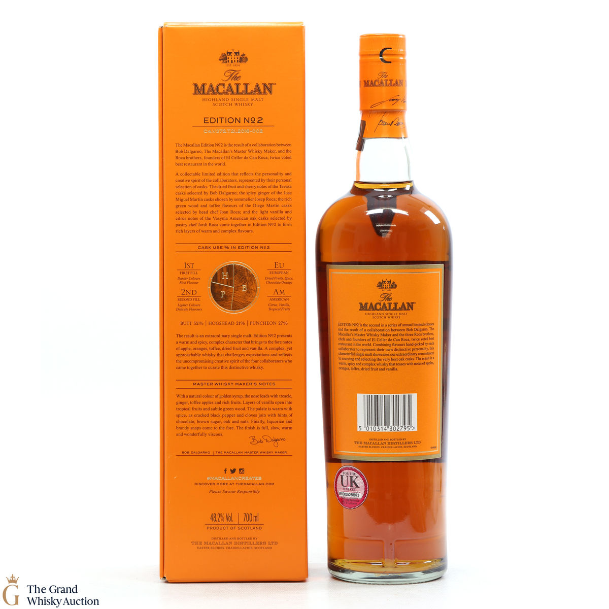 This is the second release from the Macallan Edition series. Edition No.2 is a collaboration between Macallan's master blender Bob Delgarno and legendary Spanish chefs Joan, Josep and Jordi Roca. The Rocas are the three brothers behind El Celler de Can Roca (named Best Restaurant in the World twice by Restaurant magazine). This single malt was drawn from a combination of sherry puncheons, butts and refill hogsheads.
