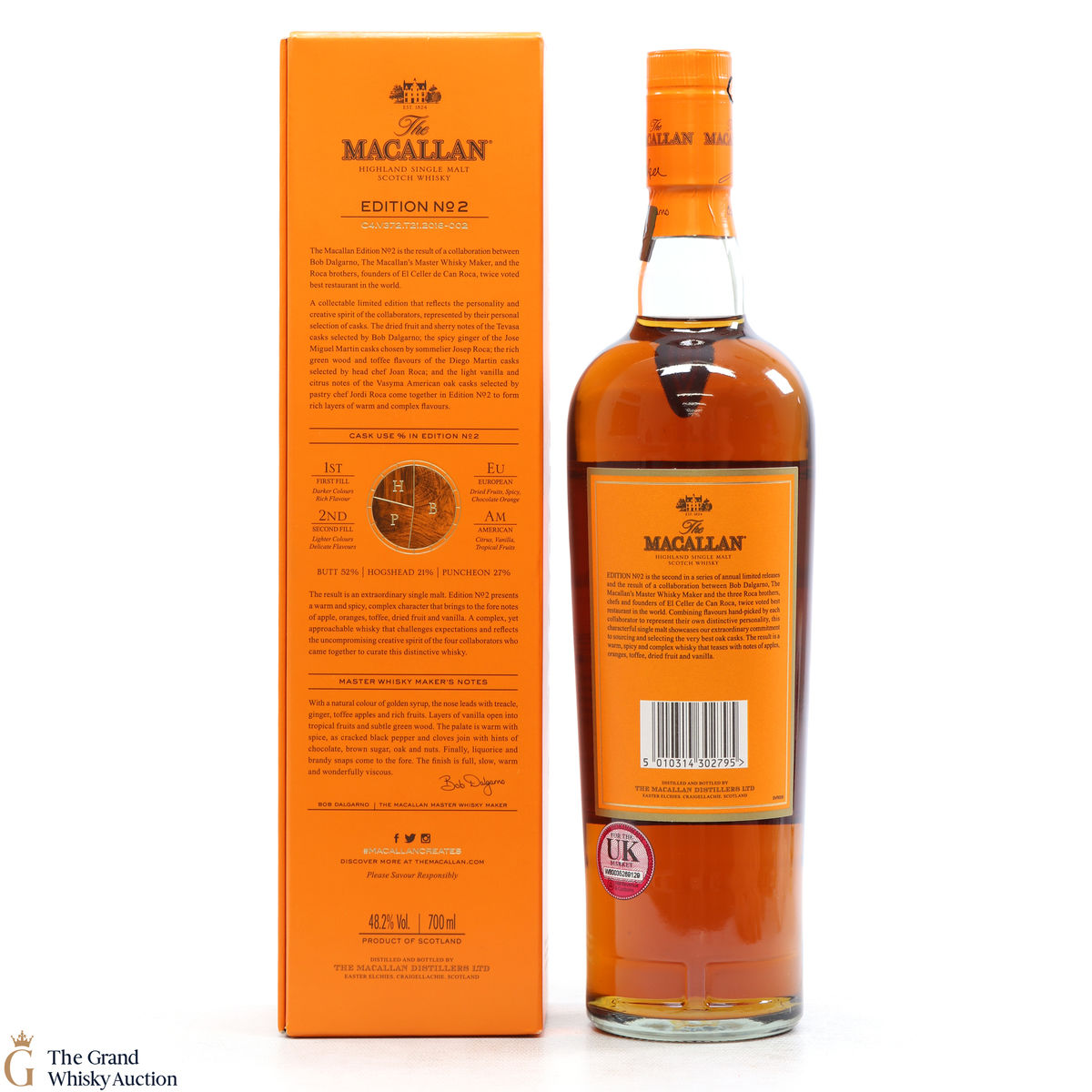 This is the second release from the Macallan Edition series. Edition No.2 is a collaboration between Macallan's master blender Bob Delgarno and legendary Spanish chefs Joan, Josep and Jordi Roca. The Rocas are the three brothers behind El Celler de Can Roca (named Best Restaurant in the World twice by Restaurant magazine). This single malt was drawn from a combination of sherry puncheons, butts and refill hogsheads.