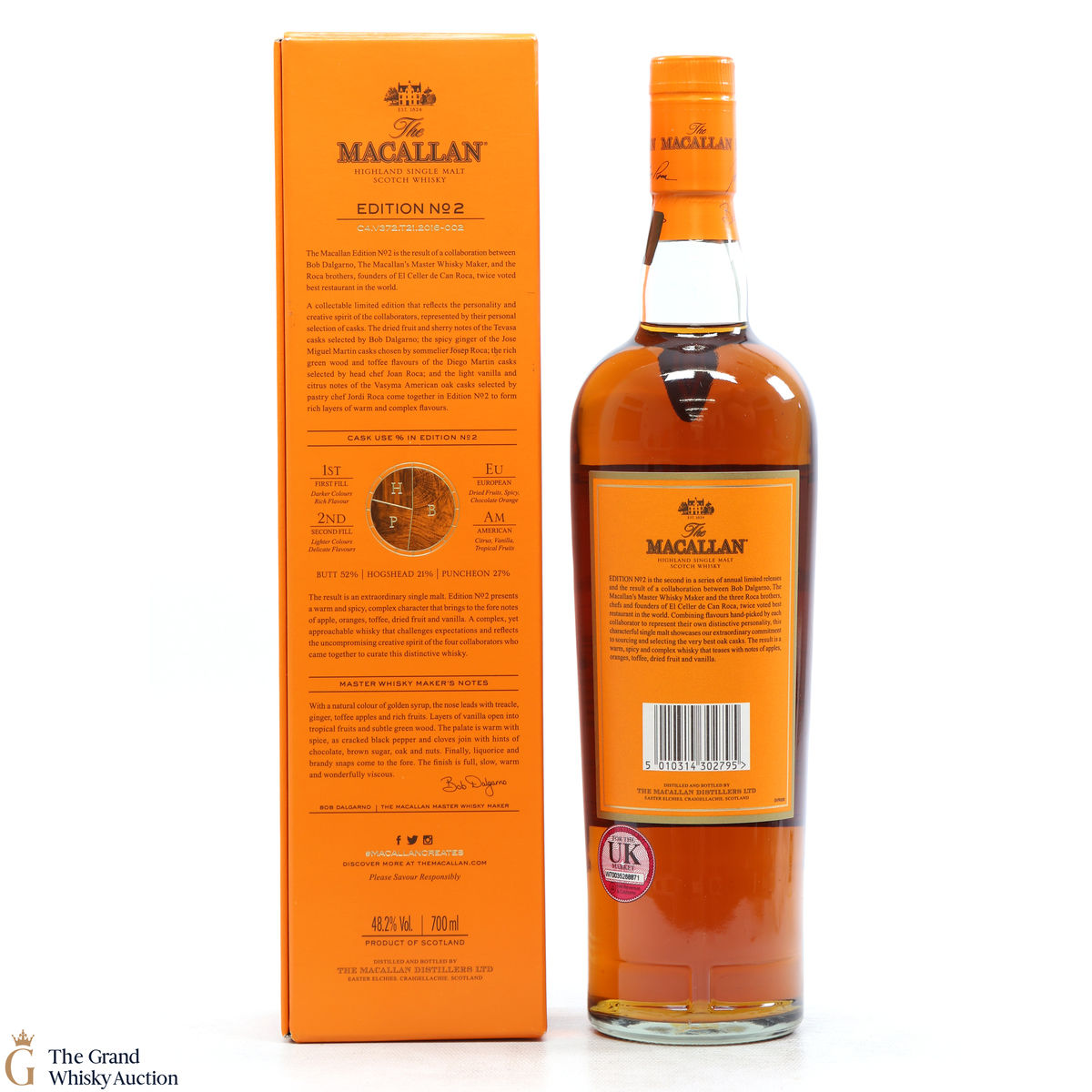 This is the second release from the Macallan Edition series. Edition No.2 is a collaboration between Macallan's master blender Bob Delgarno and legendary Spanish chefs Joan, Josep and Jordi Roca. The Rocas are the three brothers behind El Celler de Can Roca (named Best Restaurant in the World twice by Restaurant magazine). This single malt was drawn from a combination of sherry puncheons, butts and refill hogsheads.