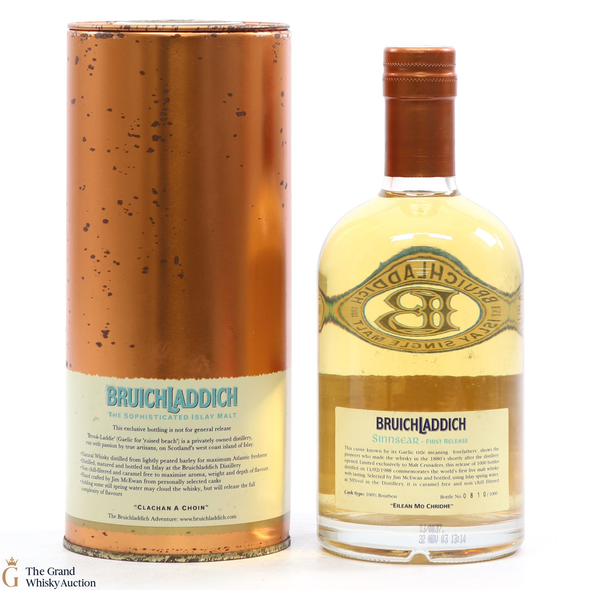 This special limited edition release from Bruichladdich that was bottled without an age statement at 50% ABV. It was distilled in 1988 and matured in 100% bourbon casks. 'Sinnsear' is Gaelic for 'Forefathers'. This is one of just 1,000 individually numbered bottles. This is a 50cl bottling.
