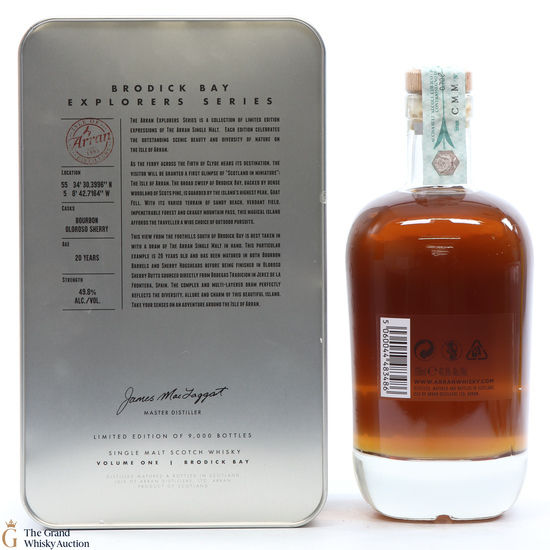 The presentation tin and the bottle label features a beautiful view from the foothills south of Brodick Bay. This is one of 9000 bottles.