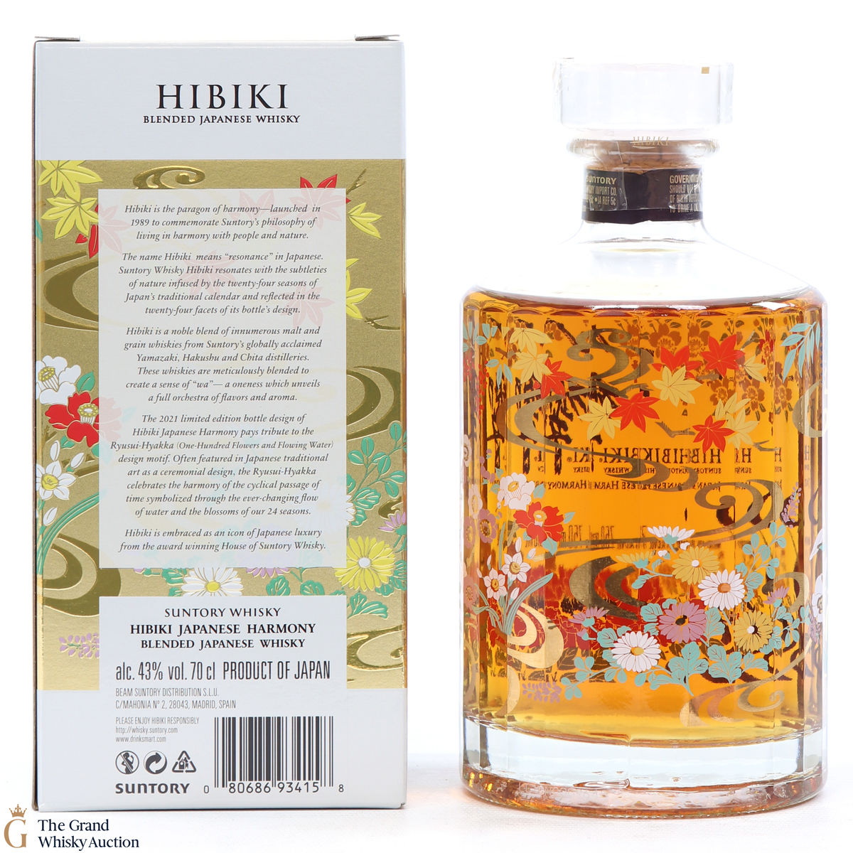 This is a limited edition, specially designed bottle with painted flowers and flowing ribbons of water. The 2021 special edition pays homage to the Ryisui-Hyakka (One Hundred Flowers and Flowing Water) and celebrates different seasonal flowers which help characterise the Japanese seasons. 5 types of casks were used and in typical Hibiki fashion, the bottle always has 24 facets which represent 24 seasons in the Japanese lunar calendar.