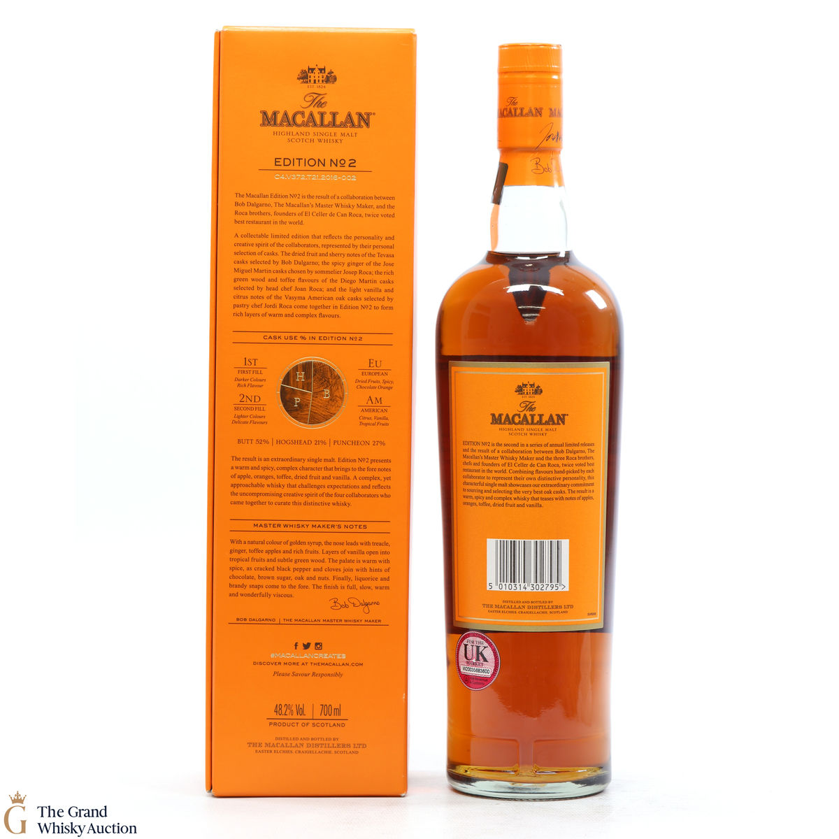 This is the second release from the Macallan Edition series. Edition No.2 is a collaboration between Macallan's master blender Bob Delgarno and legendary Spanish chefs Joan, Josep and Jordi Roca. The Rocas are the three brothers behind El Celler de Can Roca (named Best Restaurant in the World twice by Restaurant magazine). This single malt was drawn from a combination of sherry puncheons, butts and refill hogsheads.