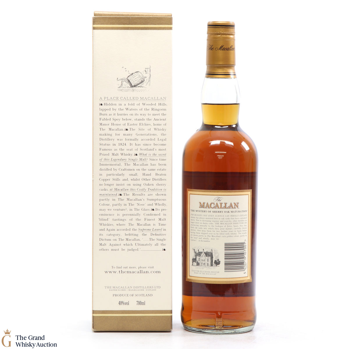 This is an old-style presentation of Macallan 10 Year old was bottled in the 1990's. This classic Speyside malt whisky matured in sherry oak casks from Jerez. Very collectable.
