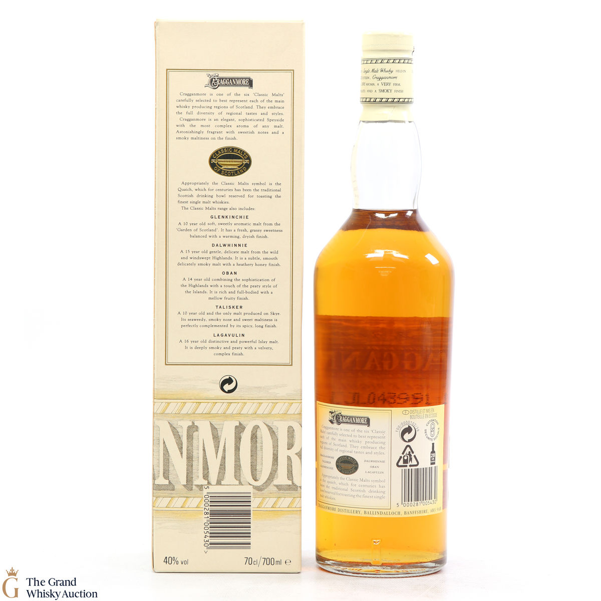 Due to the various ages of bottles and their seals, the condition of liquid is at the buyer's discretion and no claim can be lodged against failure/leakage in transit. Loss and breakage cover is available at 3% of the hammer price as standard. If the lot is not insured, no claim can be lodged against the courier or The Grand Whisky Auction for breakage or loss in transit.