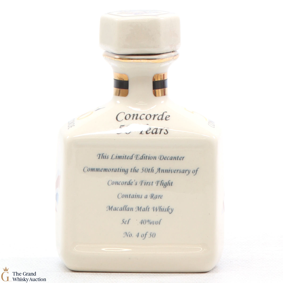 A mini decanter commemorating the 50th anniversary of Concorde's First Flight. Filled with Macallan, this is one of 50 bottles released.