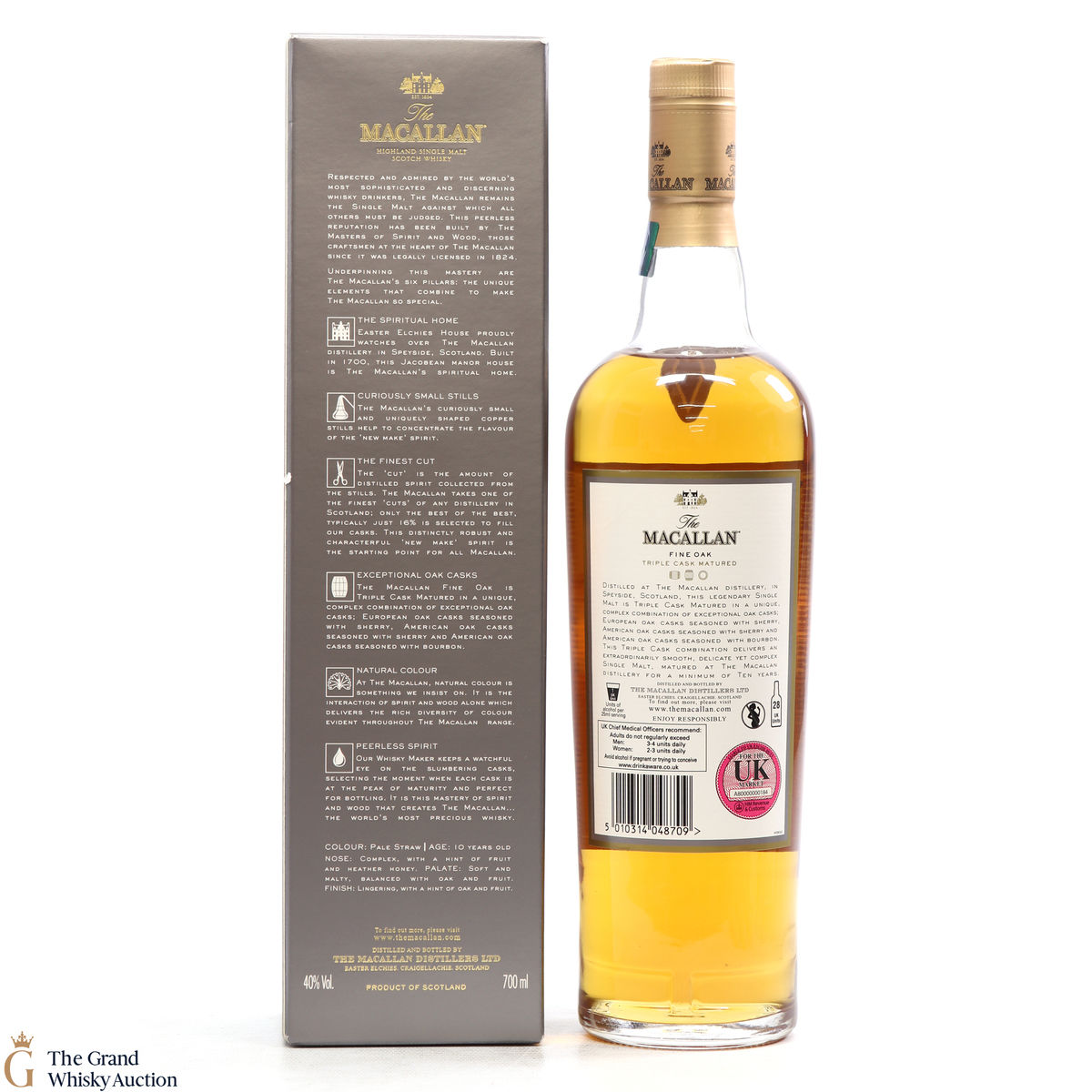 This 10-year-old single malt is part of Macallan's Fine Oak, triple cask matured range. It has been matured for ten years in three oak cask types; Europen oak seasoned with sherry, American oak seasoned with sherry and American oak seasoned with bourbon. This bottling has been discontinued.