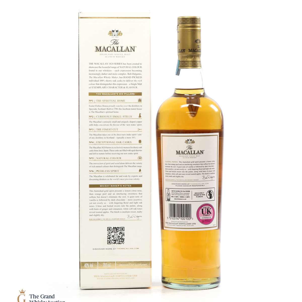The Macallan 1824 Series celebrates natural colour. The most distinctive and defining characteristic of Macallan is the sherry-seasoned oak casks that are used to mature the whisky. This series shows commitment to 100% natural colour, drawn from wood. The colour of each expression becomes deeper as the range progresses.