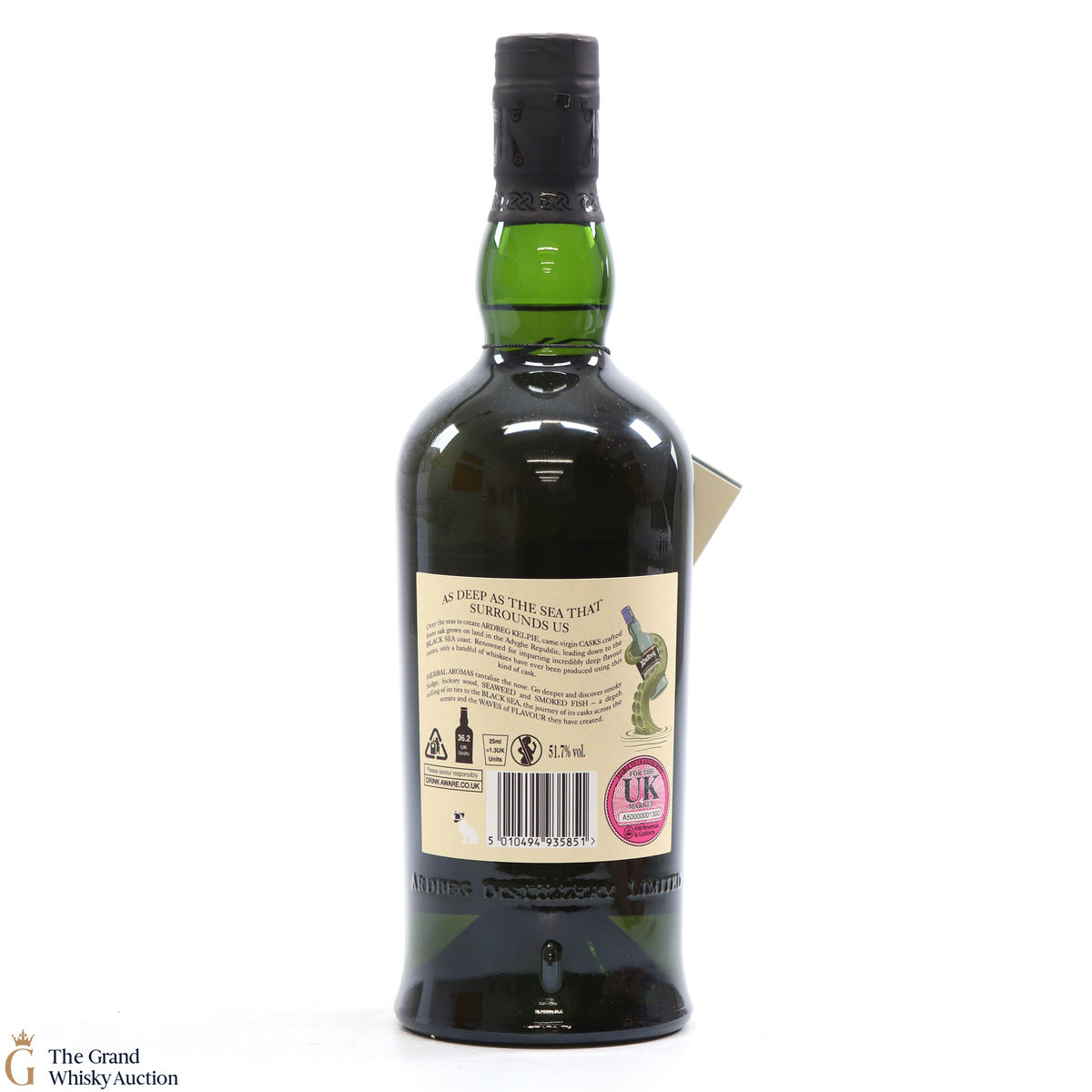 This is a committee exclusive release of the Ardbeg Kelpie, a single malt released in 2017. It was matured in casks made from virgin Black Sea oak and more traditional bourbon casks. The Committee Release is bottled at the higher strength of 51.7% ABV (while the standard Ardbeg Kelpie has bottled at 46% ABV).