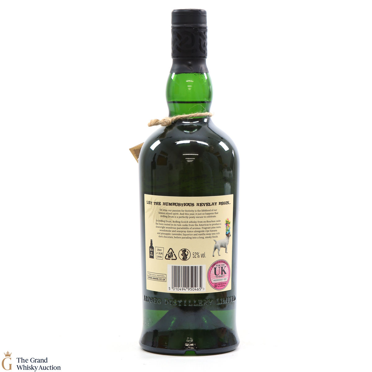 This is the 2019 Ardbeg Committee Release. The Ardbeg Drum is a non-age-statement single malt matured in ex-Bourbon casks and then finished in ex-rum casks from the Americas. It was created to celebrate Ardbeg Day 2019 (June 1) held during the Islay Festival of Music & Malt (Fèis Ìle).
