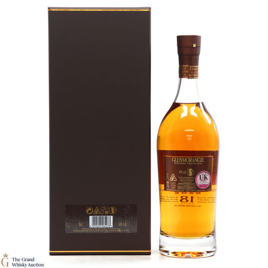 This bottle is an 18-year-old Extremely Rare, Highland single malt produced by Glenmorangie. It has been perfected by the sixteen men of Tain who have specially aged this bottle for 18 years in superior oak casks.