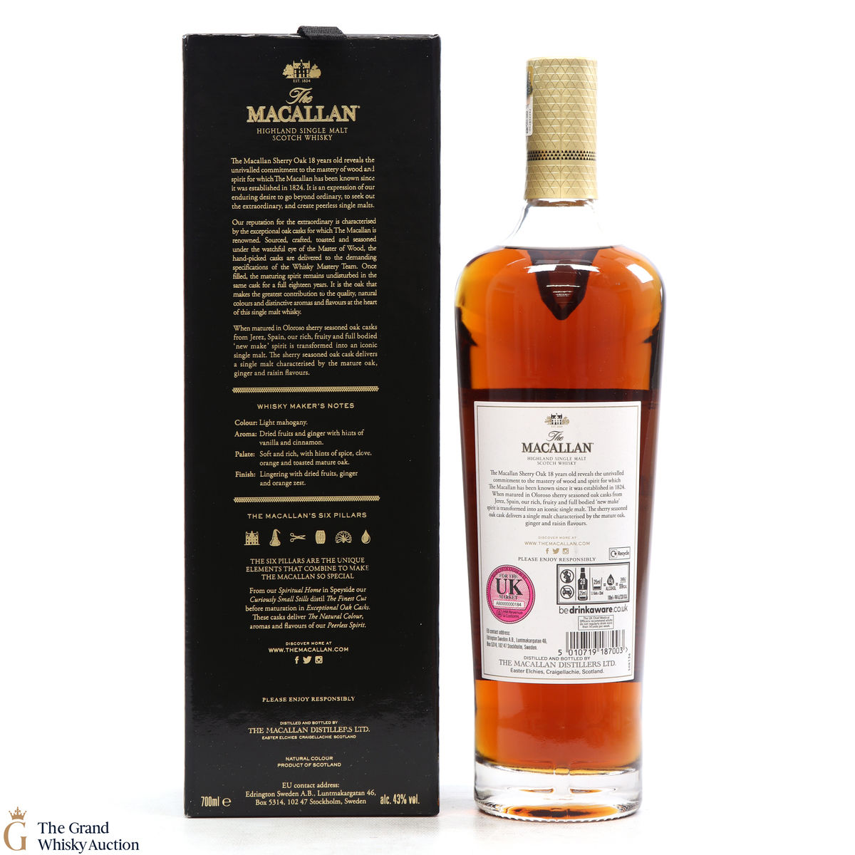 This annual release of The Macallan's popular 18 Year Old Sherry Oak is matured exclusively in sherry seasoned casks, built from both Spanish and American oak, providing a beautifully dark flavour with rich aromas.