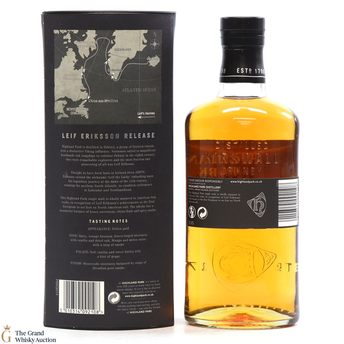 Launched in March 2010, for the travel retail market, Highland Park Leif Eriksson Limited Edition was released to celebrate the first European to reach America over a thousand years ago. The single malt was matured in American oak casks, both ex-bourbon and ex-sherry in recognition of Leif Eriksson, a pioneering Viking explorer, as the first European man to set foot on American soil.