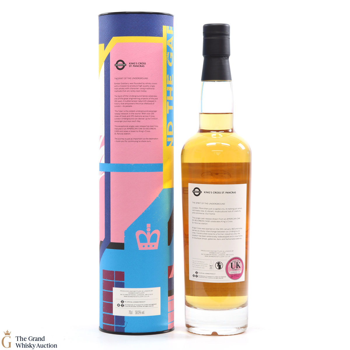 Distilled at the Bimber Distillery based in London, this single malt was matured in ex-bourbon cask #129 and bottled in May 2021 as part of The Spirit of the Underground series, given the title of Kings Cross St Pancras. Complete with its colourful packaging, this is one of only 259 bottles produced.