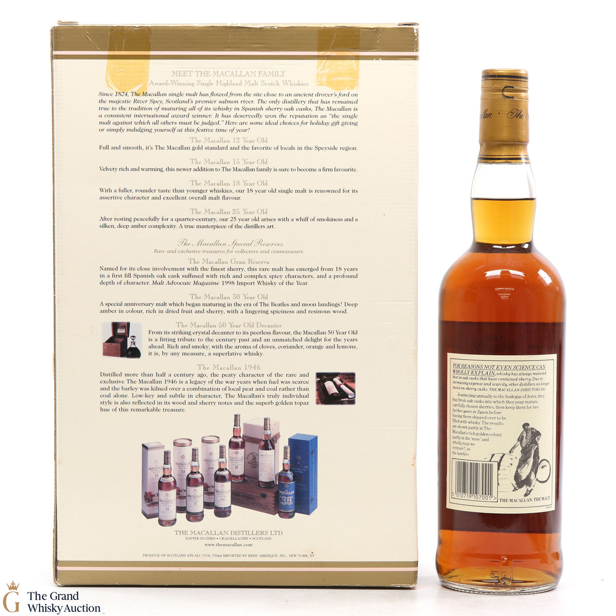 Due to the various ages of bottles and their seals, the condition of liquid is at the buyer's discretion and no claim can be lodged against failure/leakage in transit. Loss and breakage cover is available at 3% of the hammer price as standard. If the lot is not insured, no claim can be lodged against the courier or The Grand Whisky Auction for breakage or loss in transit.