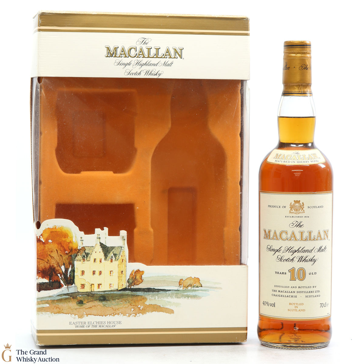 This lot is an old-style presentation of Macallan 10 Year old in a gift set that includes 2 x Macallan glass tumblers. This classic Speyside malt whisky matured in sherry oak casks from Jerez. Very collectable.
