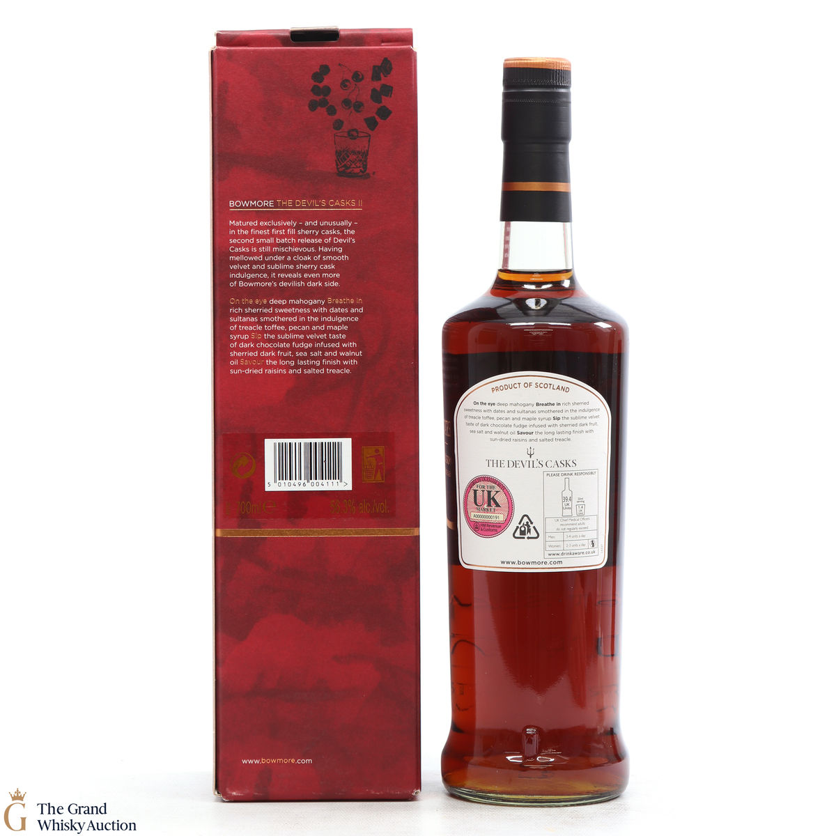 Bowmore 10 Year Old Devil's Cask is a limited edition and incorporates a unique fusion of rich fruit and dark chocolate. It is from the finest first fill Sherry casks.