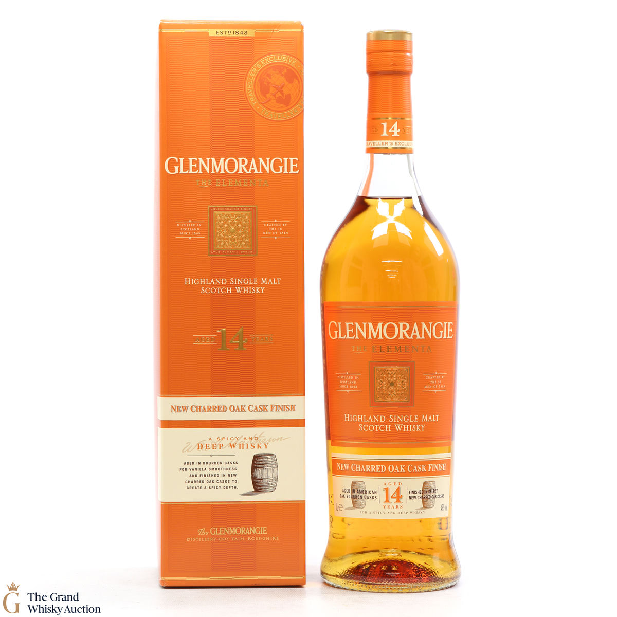 This spicy and deep Elementa celebrates Glenmornagie's skills in wood finishing, an art which brings new depths of flavour to their whisky. Matured initially in American oak bourbon casks to create smoothness and fruity notes and finished in charred oak casks, bringing forth a 14-year-old whisky of woody depth and intense spice. Available exclusively in travel retail.